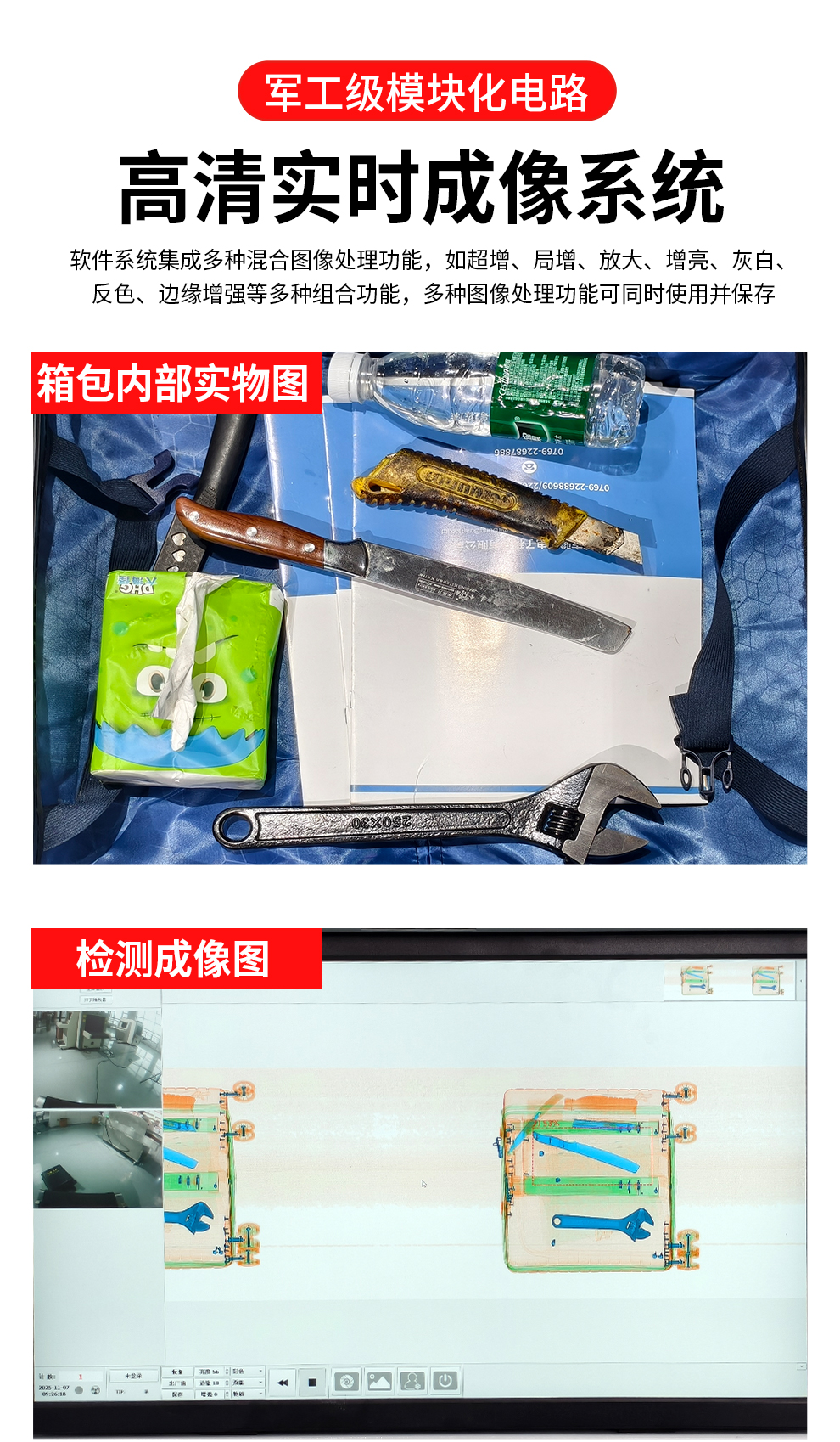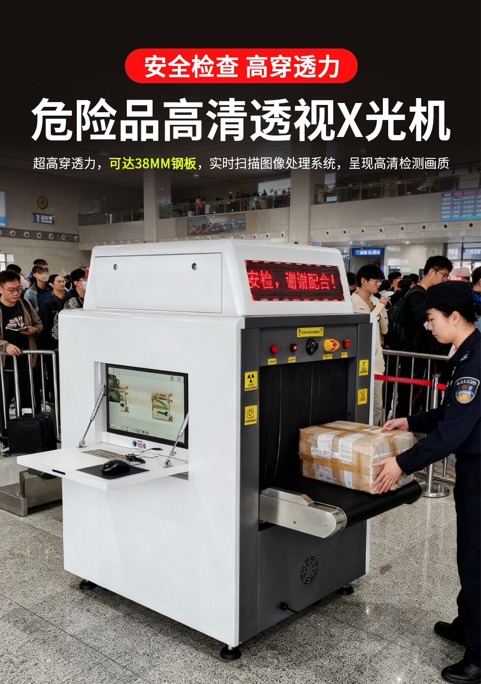 精准高清的探测成像,采用新一代高清采集方案或高清图像处理技术,确保图像清晰度高,细节丰富。强大的穿透力,可穿透38mm厚的钢板 ,确保即使是在密集的行李中,也能有效识别藏匿物品。设备辐射剂量低,符合国内外健康安全标准,并对ISO1600胶卷安全 ,彻底消除用户对安全性的顾虑。新型号支持远程管理平台,可实时监控多台设备状态和报警信息,非常适合大型枢纽和连锁机构使用
