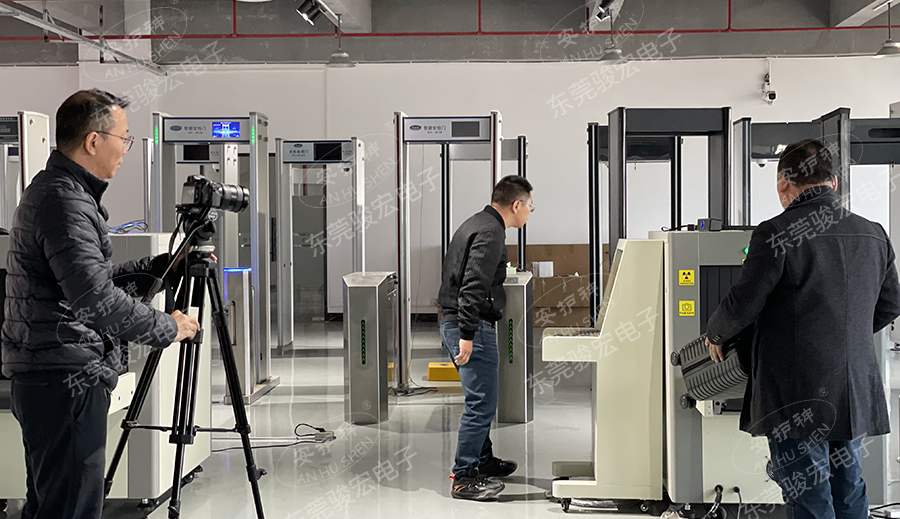 拍摄现场我们还演示最新的研发的安检闸机一体机、行李安检机等安防设备: