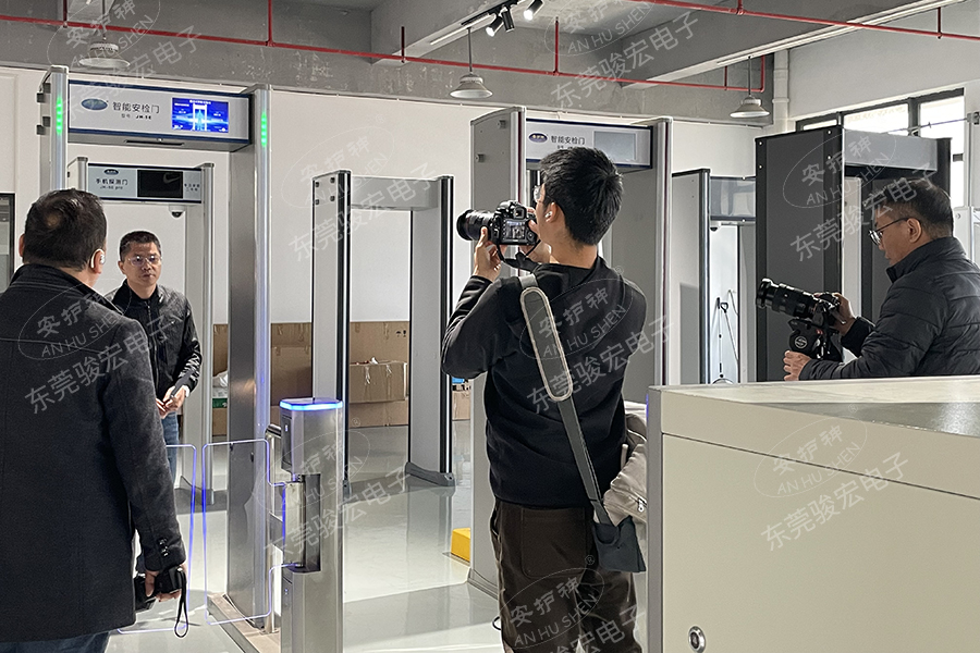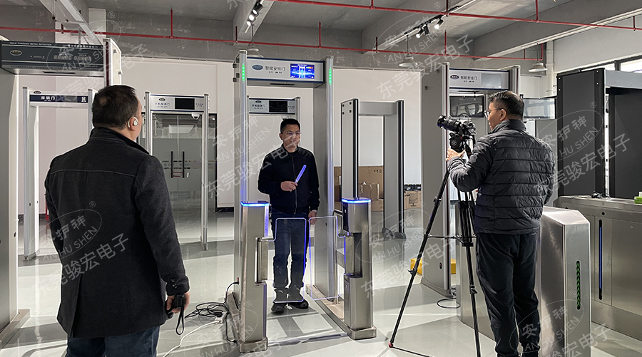 拍摄现场我们还演示最新的研发的安检闸机一体机、行李安检机等安防设备: